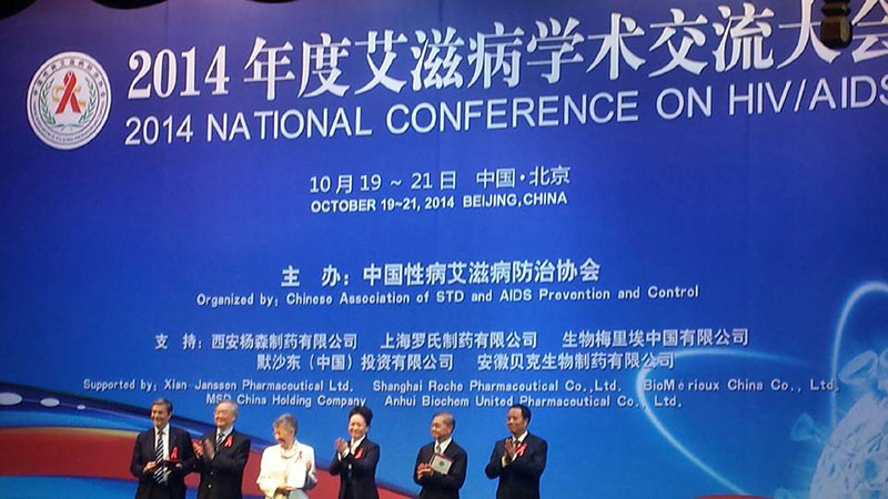 2014年10月20日,本年度規(guī)格最高、影響力最大的艾滋病學術(shù)交流大會在北京建國飯店舉行開幕儀式。艾滋病親善大使彭麗媛女士,諾貝爾獎獲得者法國佛朗索瓦絲·巴爾-西諾西教授及洛克菲勒大學艾倫·戴蒙德艾滋病研究中心主任何大一教授等國內(nèi)外艾滋病等相關(guān)領域的知名人士、著名專家學者應邀出席,國內(nèi)疾控系統(tǒng)負責人、愛心企業(yè)和新聞媒體人士共一千余人參加開幕式。