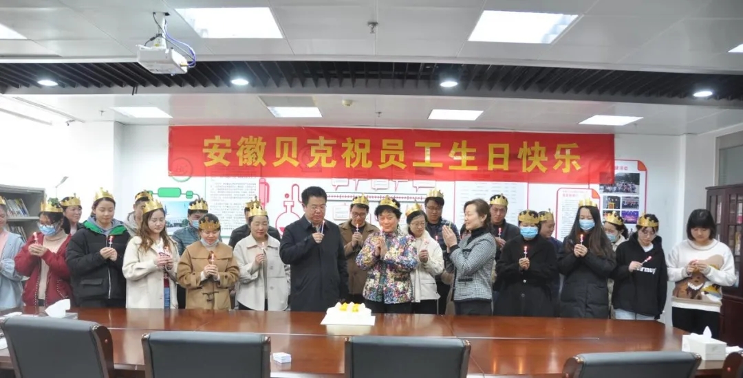 貝克制藥集團工會主席張華、貝克經(jīng)營公司工會主席劉子忠分別在太和和合肥兩地公司為72名員工舉辦了生日會,為大家發(fā)放福利卡,并送上了溫馨的祝福。