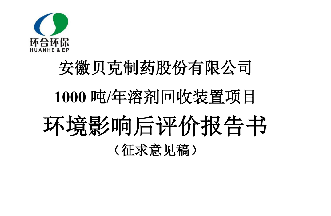 - 安徽貝克制藥股份有限公司1000噸/年溶劑回收裝置項(xiàng)目 環(huán)境影響后評(píng)價(jià)征求意見(jiàn)稿公示