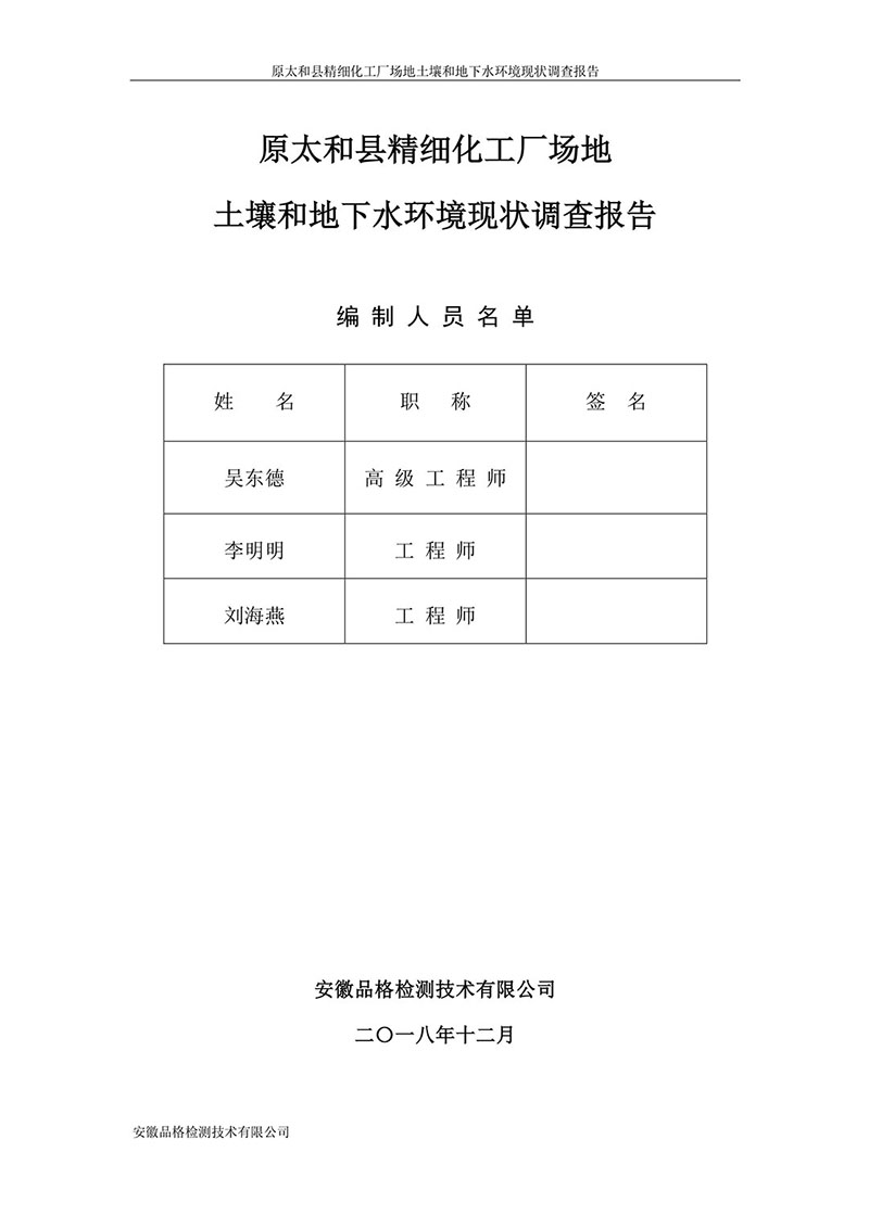 原太和縣精細(xì)化工廠 場(chǎng)地土壤和地下水環(huán)境現(xiàn)狀調(diào)查報(bào)告