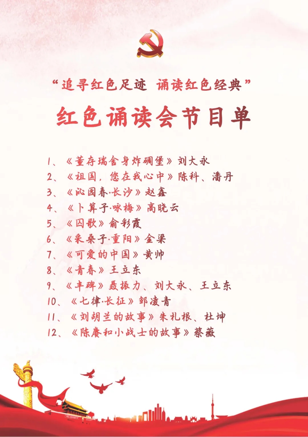 【回望紅色經(jīng)典,追憶崢嶸歲月】在黨支部黨員同志的精心組織和準(zhǔn)備下,各小組選送了12組節(jié)目15名黨員參加現(xiàn)場誦讀。